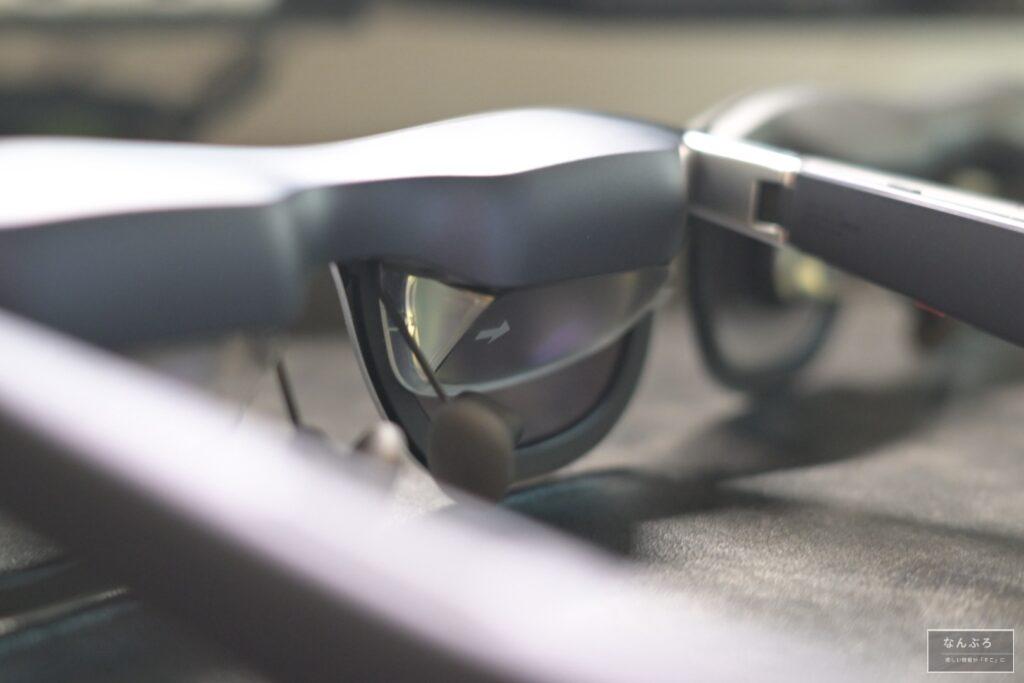ARグラスにあるスピーカーやボタンなどは基本的に同じなのですが、グラスは斜めのグラス(反射が気になる形)です。