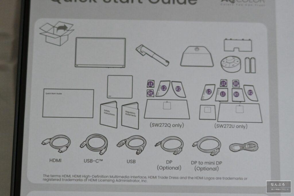 BenQ カラーマネジメントモニターSW272Qの付属品はこちらです。