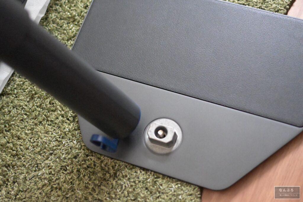 まず、モニターの支柱を土台にセットしネジを締め、あとはモニターを取り付けたら完成です。