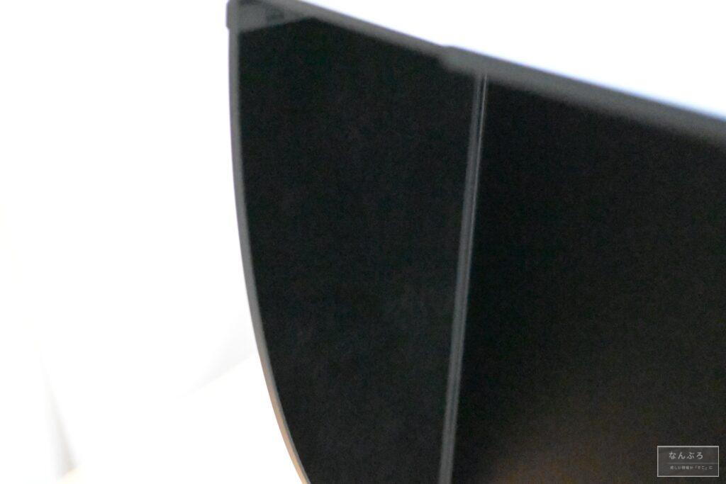 純正遮光フードが標準搭載なので、モニターの全体デザインや見た目もスマートです。