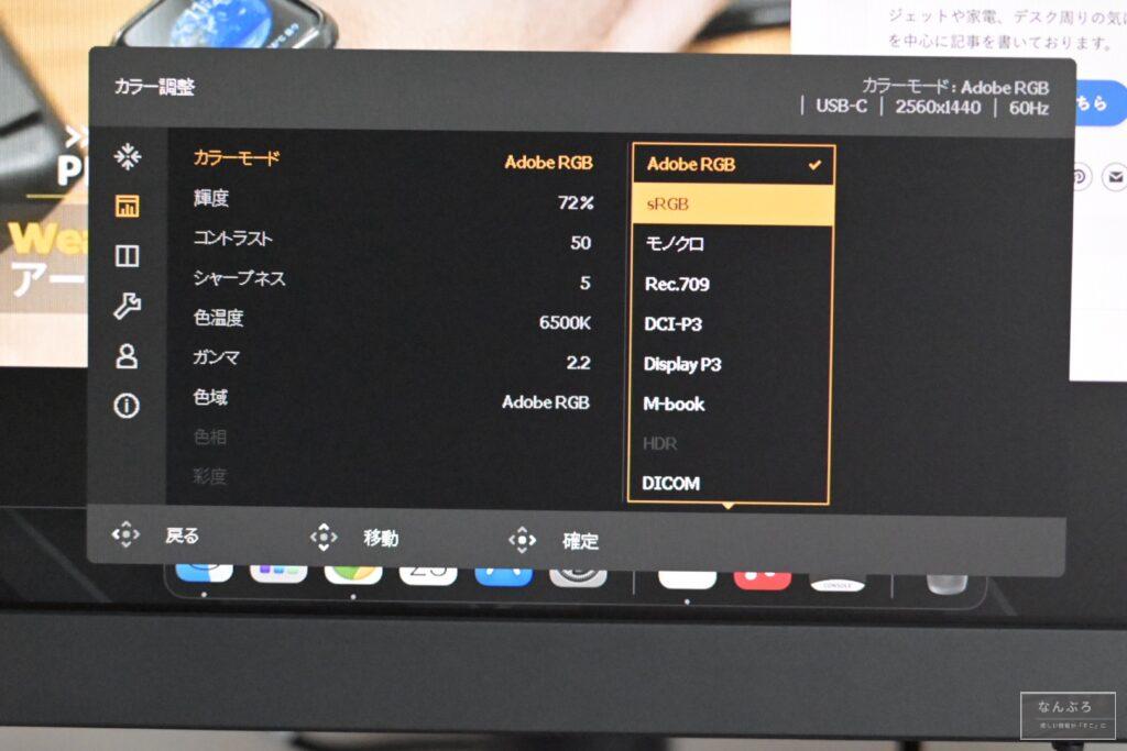 このあたりの操作感は今までのモニターとそこまで大きな変化はなく、従来通り使いやすかったです。