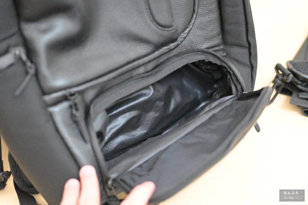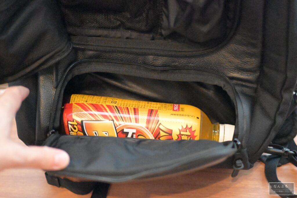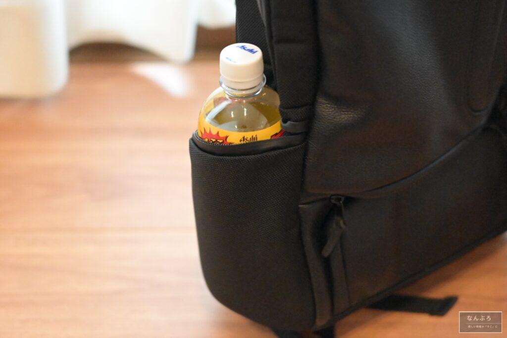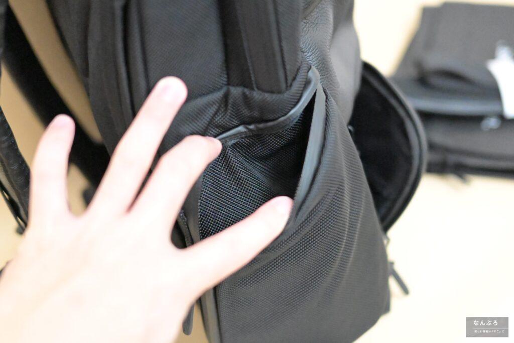 リュックのサイドポケットには折り畳み傘を収納できるスペースもありますし、細かい配慮がされていて、しっかりと使い勝手を考えられています。
