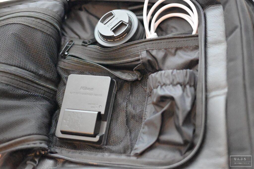 例えば、カメラのレンズを交換したい時や、充電ケーブルを取り出したい、モバイルバッテリーを取り出したいなどいろんなシチュエーションに対応できます。