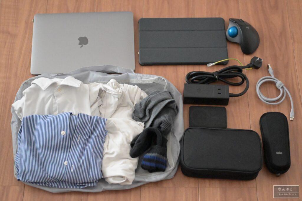 ちなみに、出張時の2泊3日の荷物を全てリュックに入れてみるとこんな感じです。