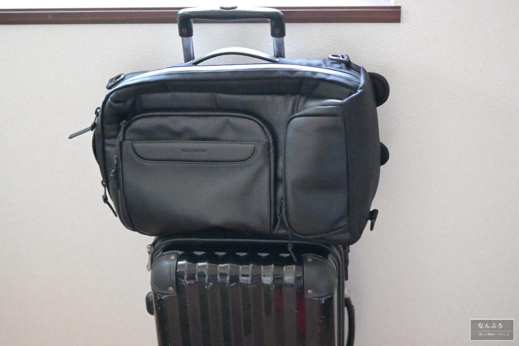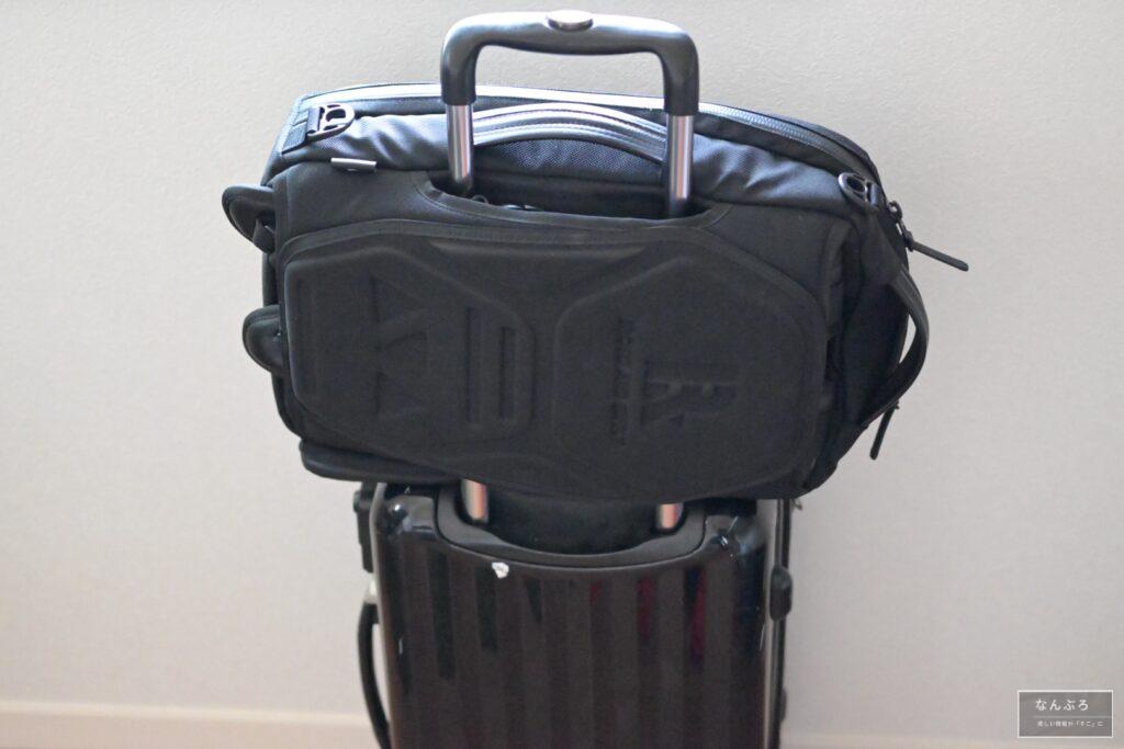 ちなみに、このままキャリーケースの持ち手部分にすっぽり入れることもできます。