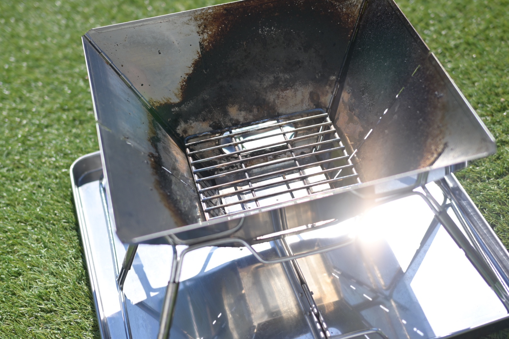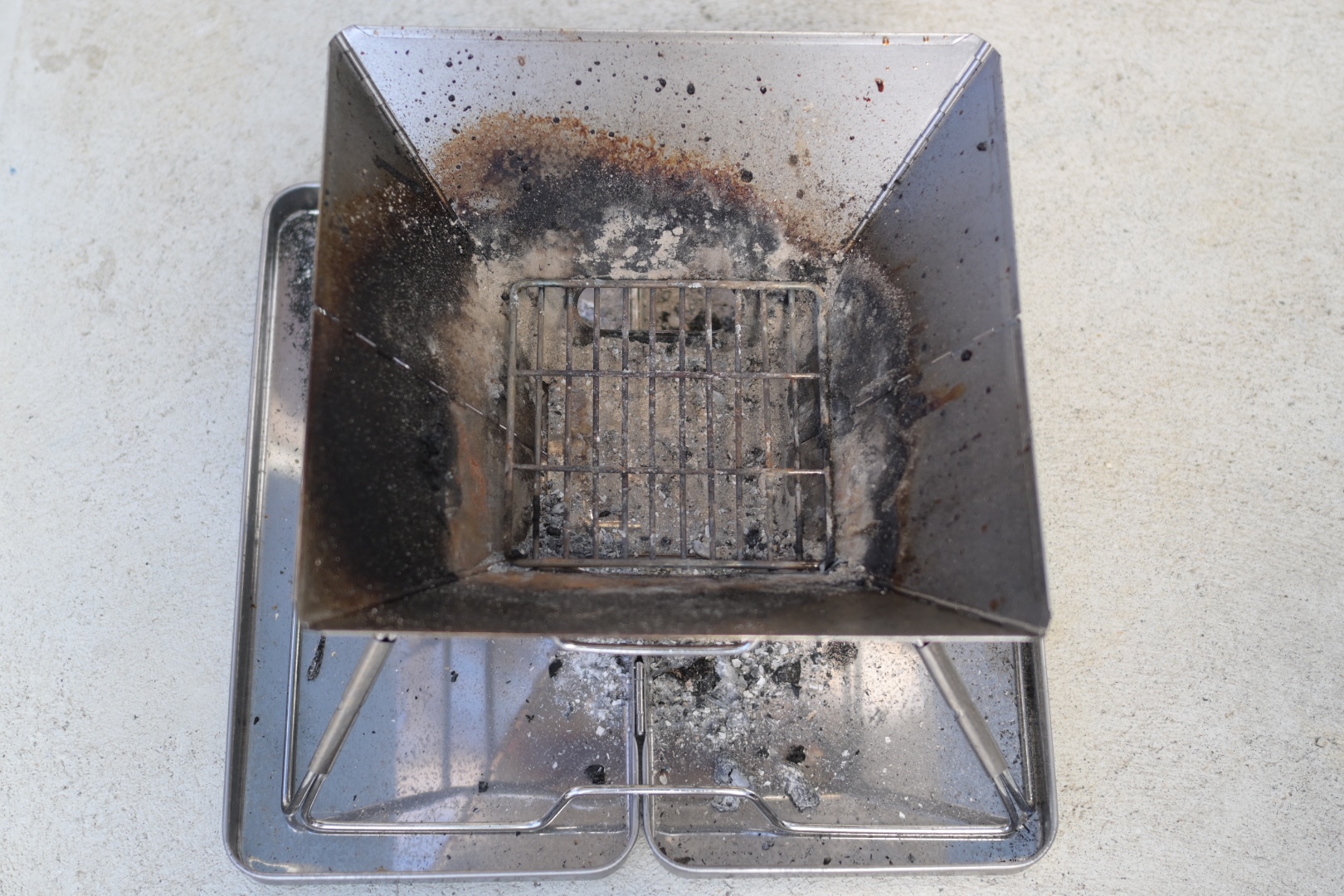 組み立ては簡単で、下に灰受け皿を敷いてその上に骨組みと本体を乗せたら完成です。