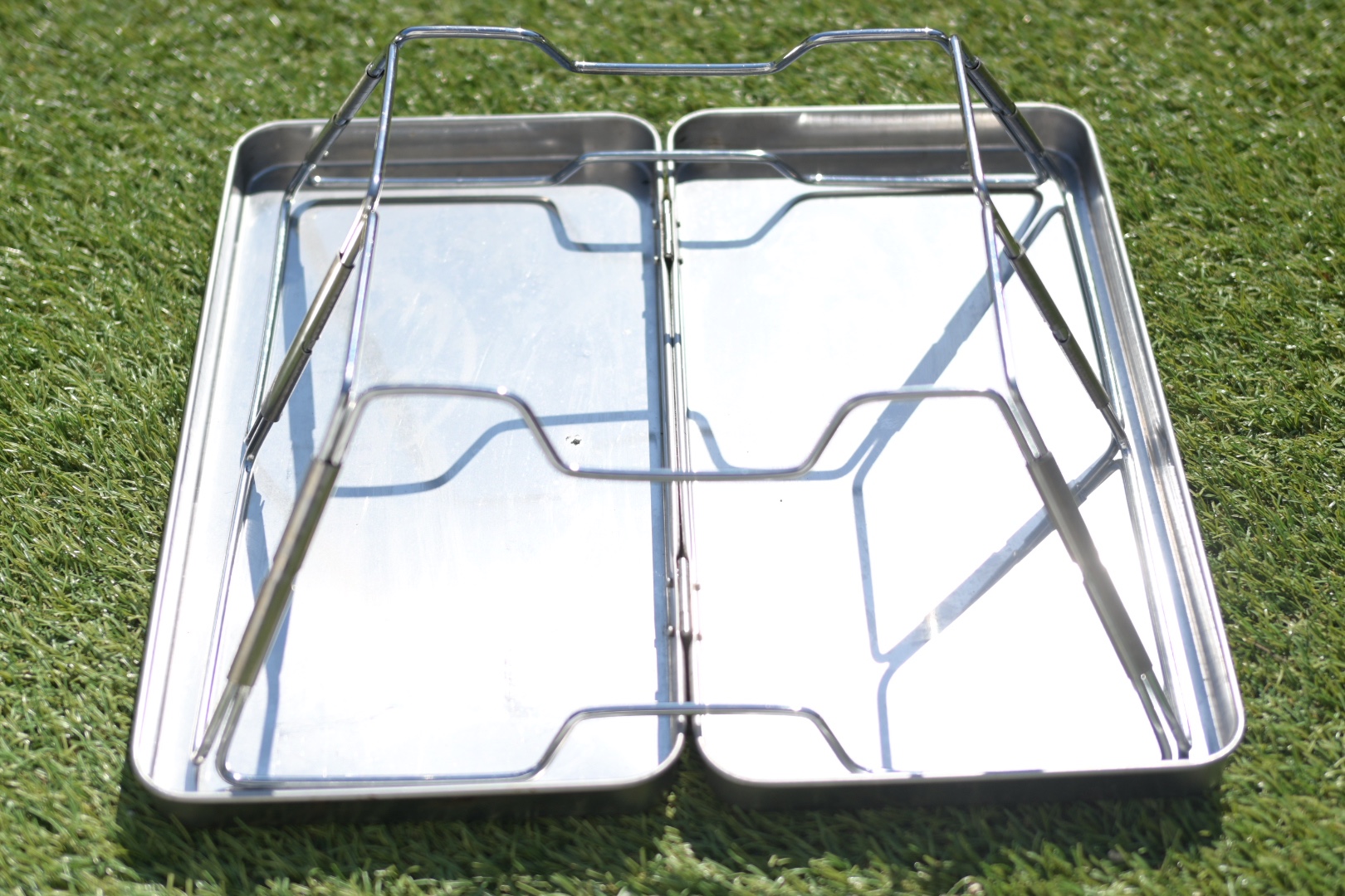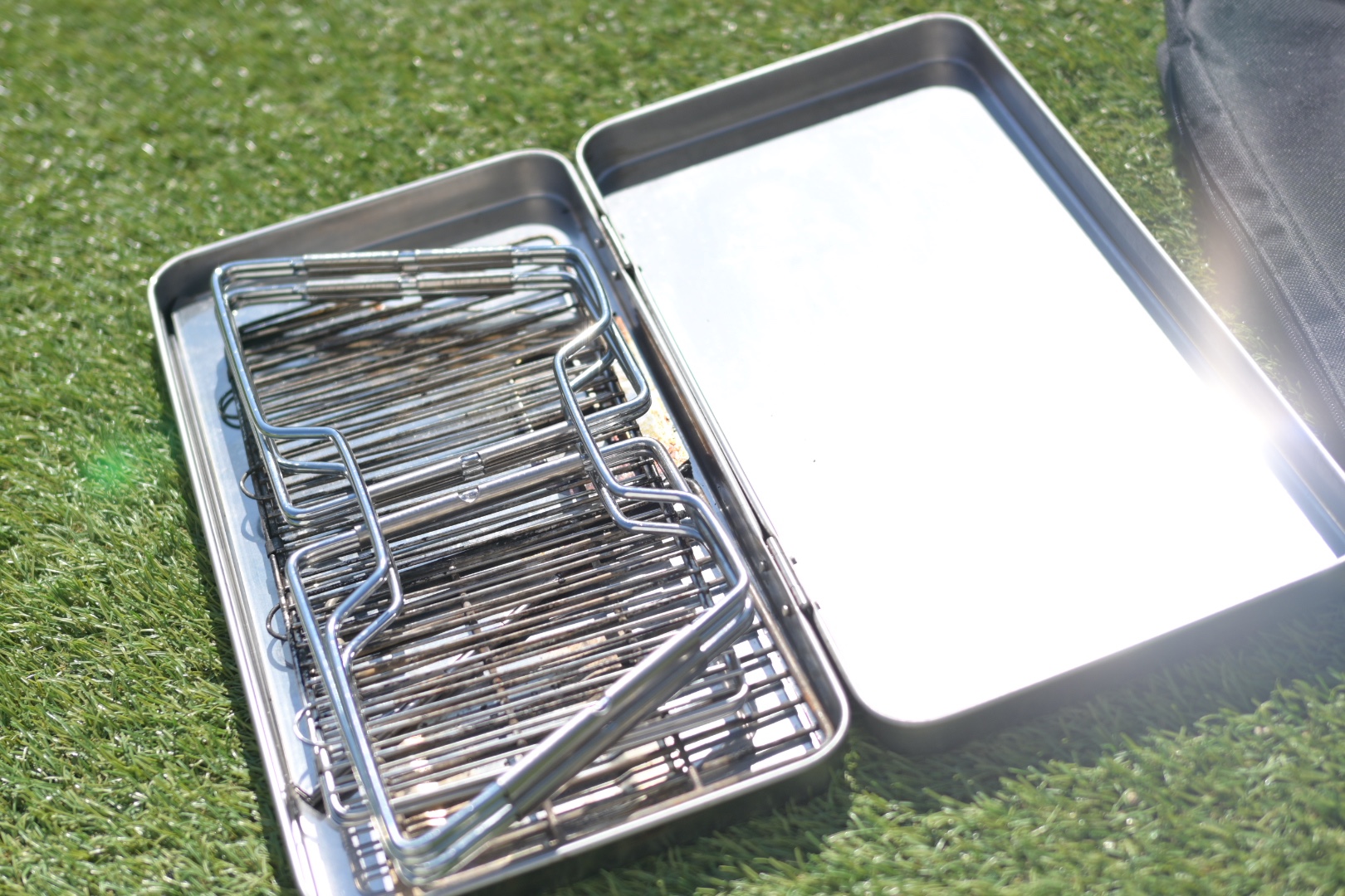 そして、本体含め二つ折りにできるのでステンレスの収納ケースに収納するだけです。