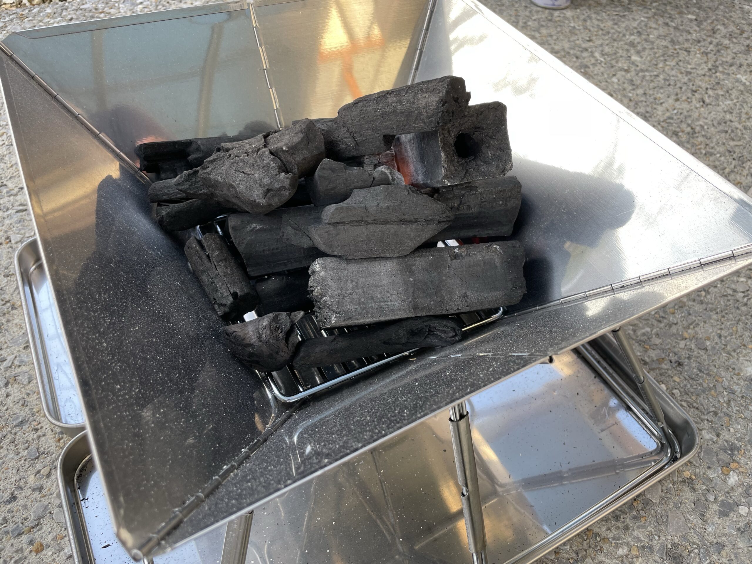 これは炭を入れる前の写真ですが、四角形でサイズ感もいい感じですよね。