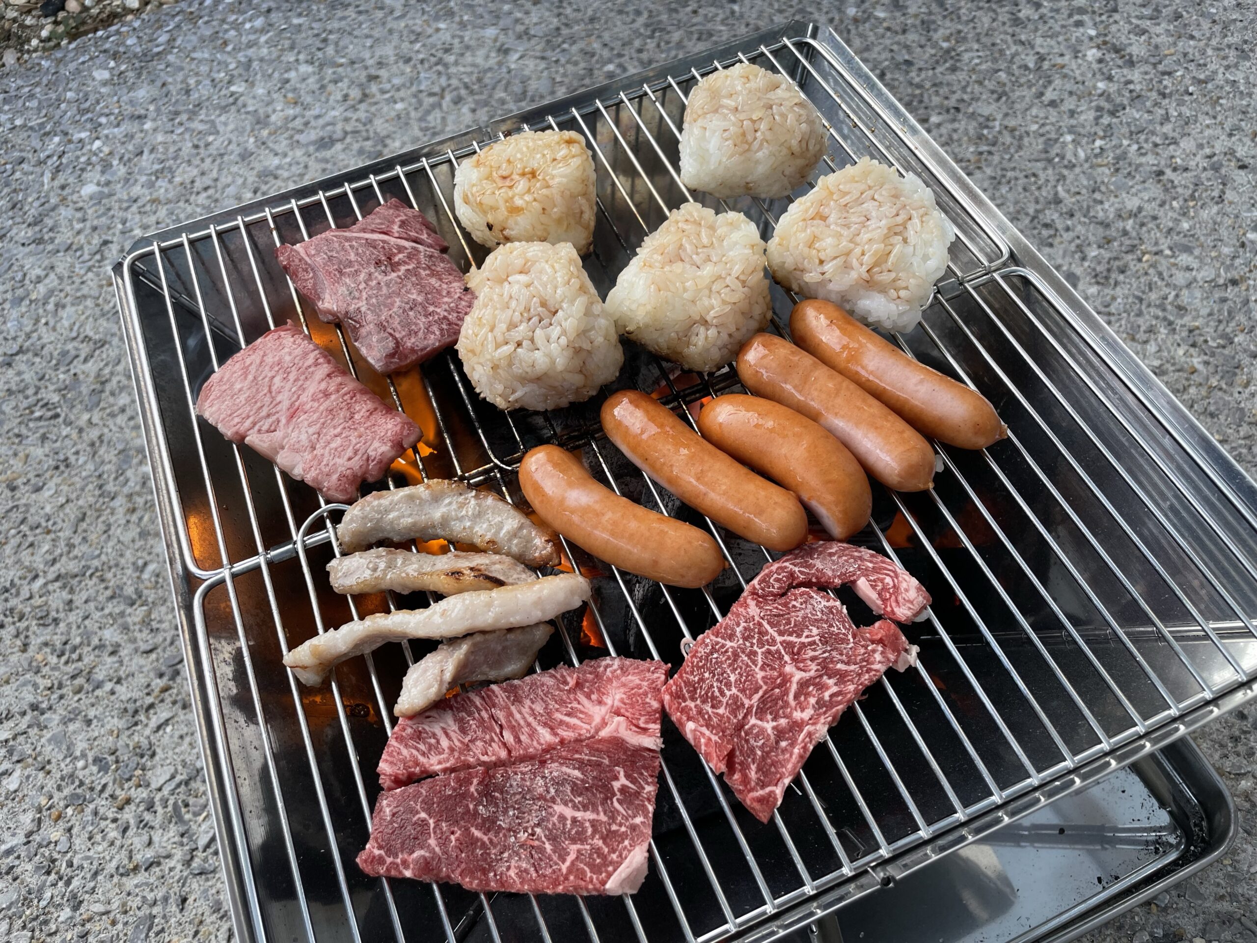 お肉とかおにぎりを網に置けば良い感じになってきます。