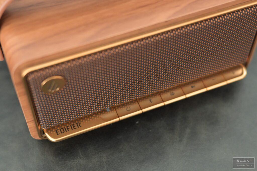 前面にはスピーカーに加え、電源ボタンや、Bluetooth接続ボタンなど物理ボタンがあるので操作性も抜群です。