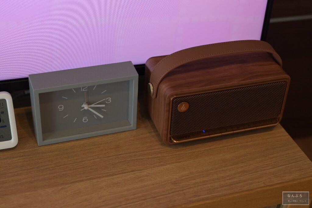 デスクに置いて作業時のBGMを流すのにもちょうど良いサイズ感。