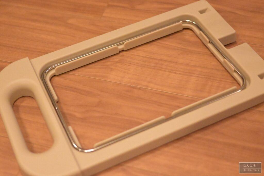 スライド開閉式なので天板はスライド式で、あとは基本的にフレームのみというスタイリッシュなデザインです。