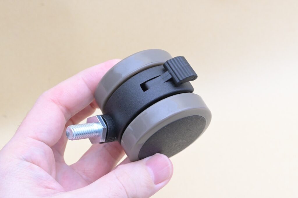 取り付けは脚のストッパーをくるくる回して外し、そのままキャスターを取り付けるだけです。