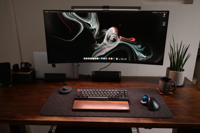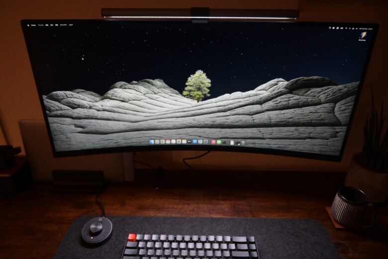 それでは実際にF8LBを取り付けていきます。今回取り付けるのは、このウルトラワイドモニター(34インチ)です。