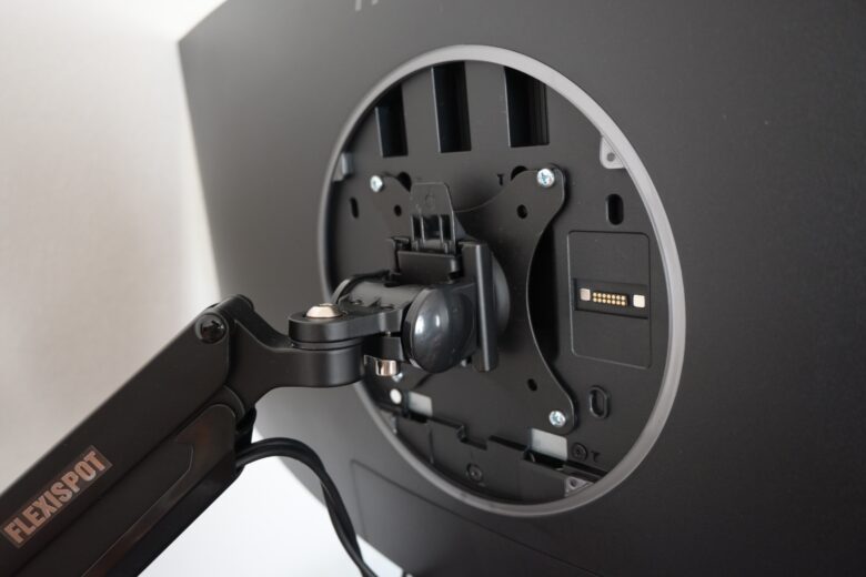 モニター頭部部分はVESA規格(75 × 75もしくは100 × 100)に対応してます。