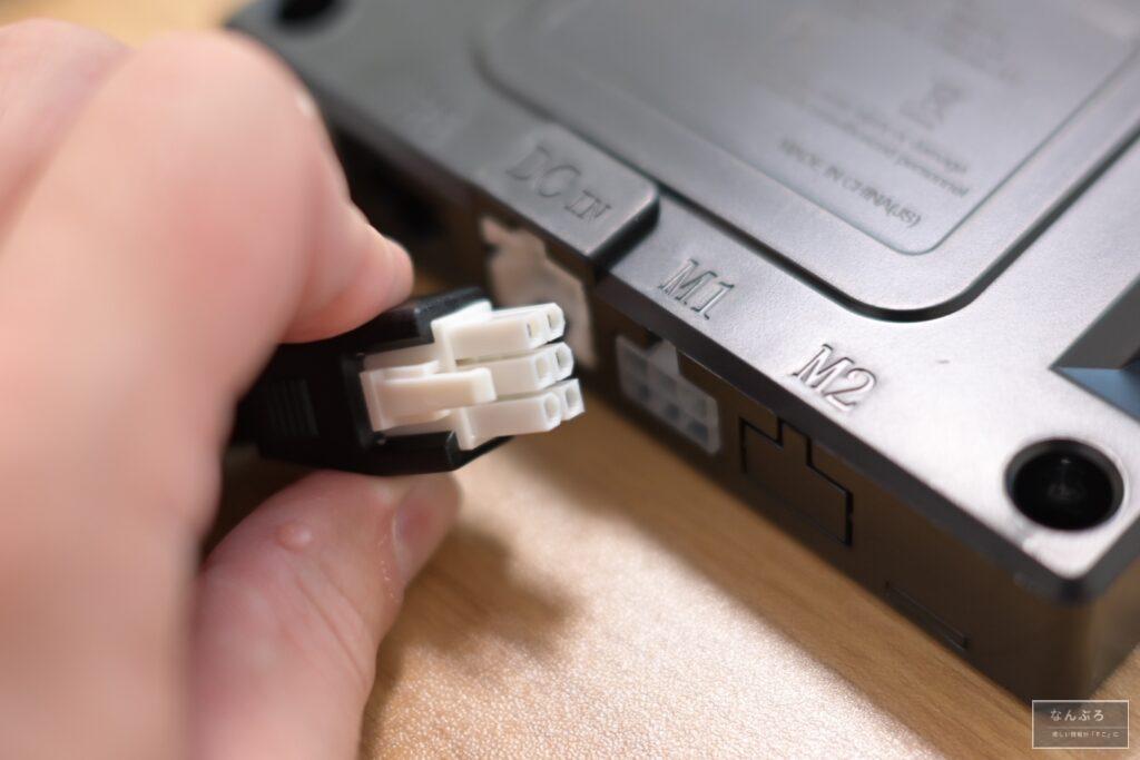 このあたりの作業も、ケーブルは穴の数が違うので接続を間違えることはないですし、アダプタもすでにマジックテープが貼り付けてあるので安心して作業ができます。