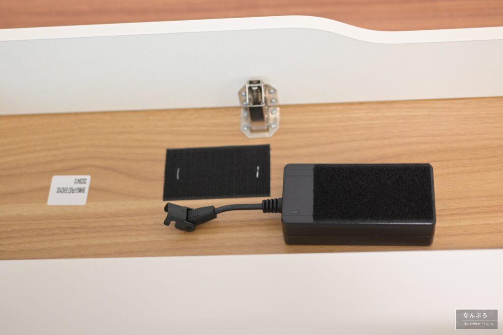 次は、ケーブルを接続する作業と、アダプタをマジックテープと合わせて天板に貼り付ける作業です。