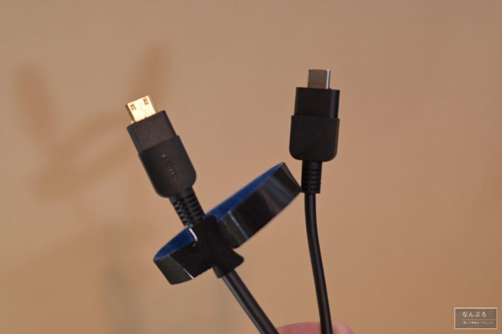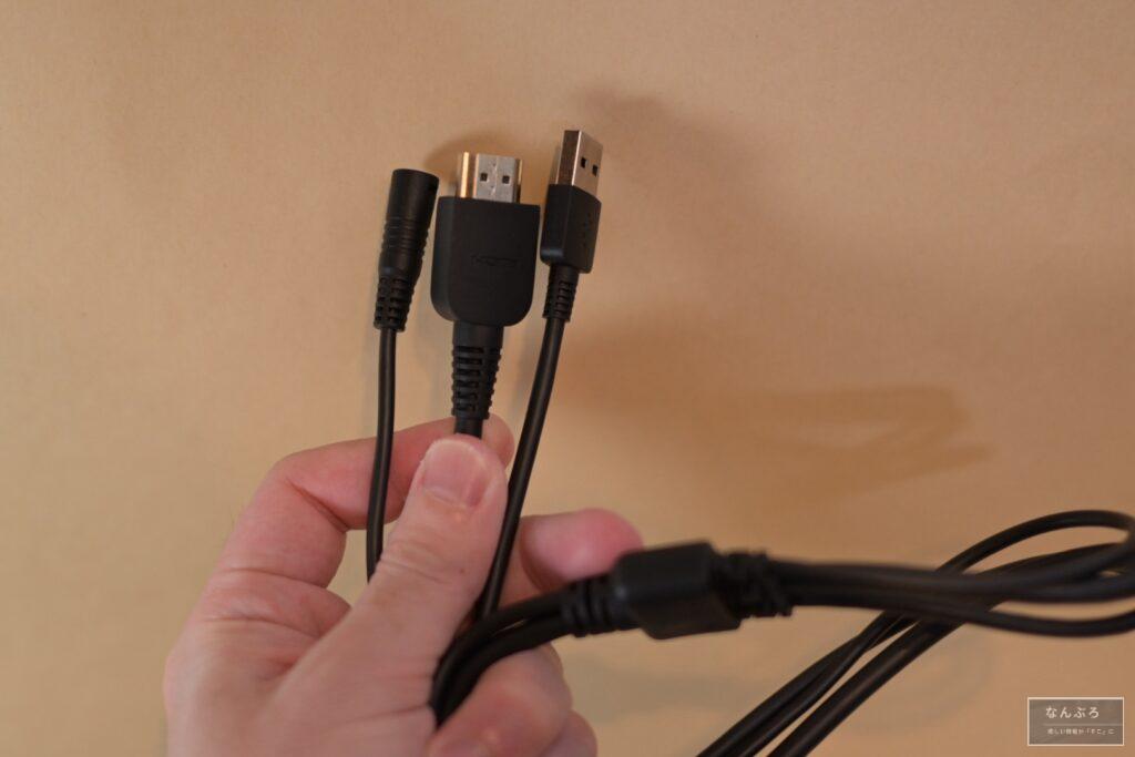 後述してますが、付属のコード(電源や映像出力、デバイスの接続)も1本で完結できるのですが、逆にこの専用ケーブルでないと無理なのでちょっとな…と思うポイントでもあります。