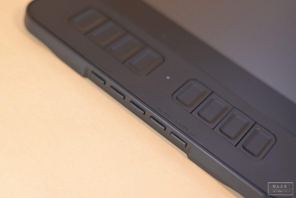 左側に8つのショートカットボタン(表側に上4つ、下4つ)ボタンがあるので、例えば「新規ページを作成」したり、作成したイラストの「名前をつけて保存」などの操作であれば8つのショートカットが使えます。