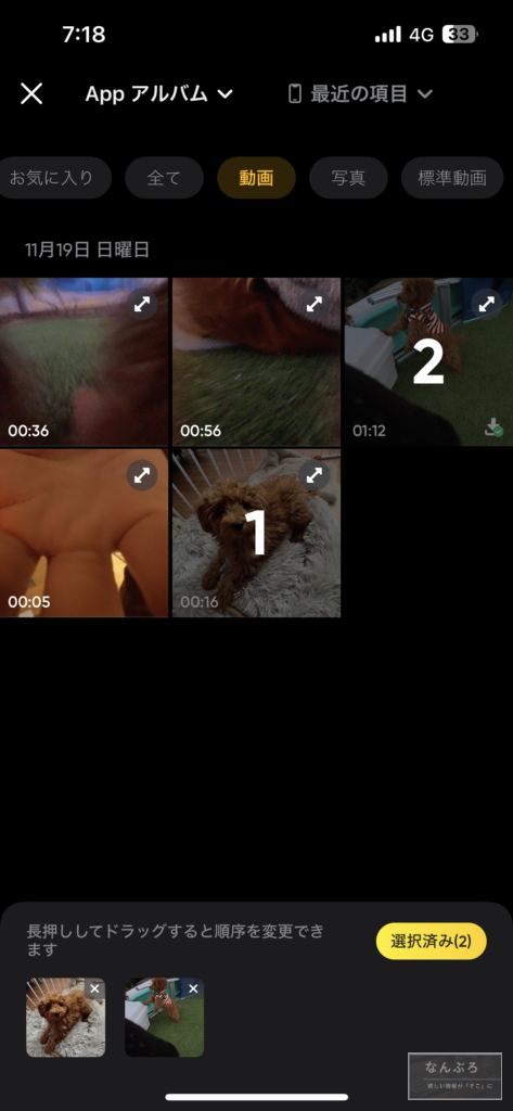 ちなみに、動画は「Free Frame動画」で撮影しています(おすすめなモード)