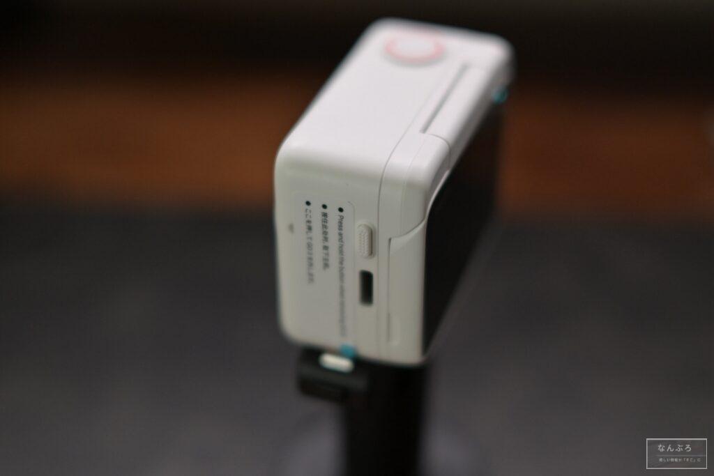 本体右側にGO3本体を外すためのボタンと、Type-Cケーブルポートがあり、左側には電源ボタンとプリセットを変更するボタンがあります。