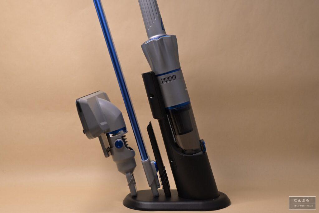 - 置くだけで充電できアタッチメントも一緒に収納可能