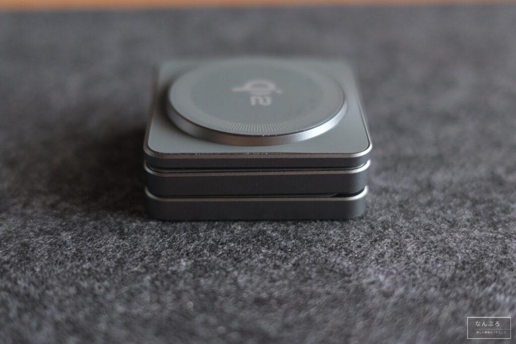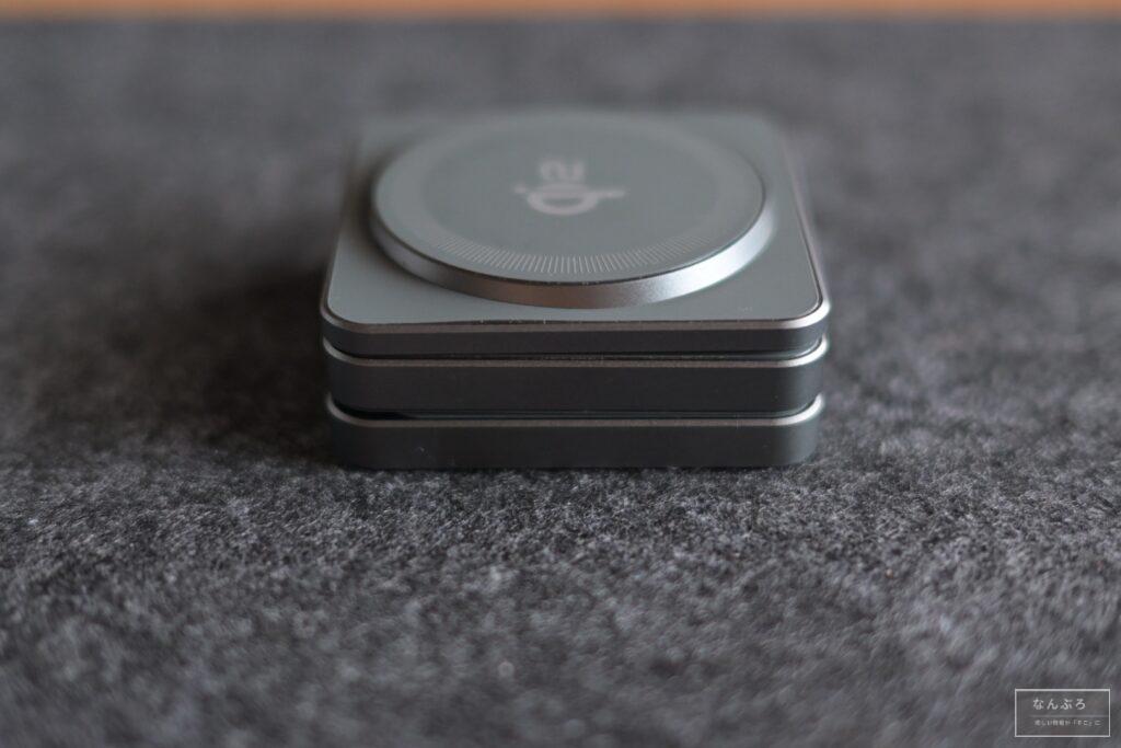 今回のMagCharger Qi2は見た目の高級感も、サイズ感のコンパクトさもよかったです。