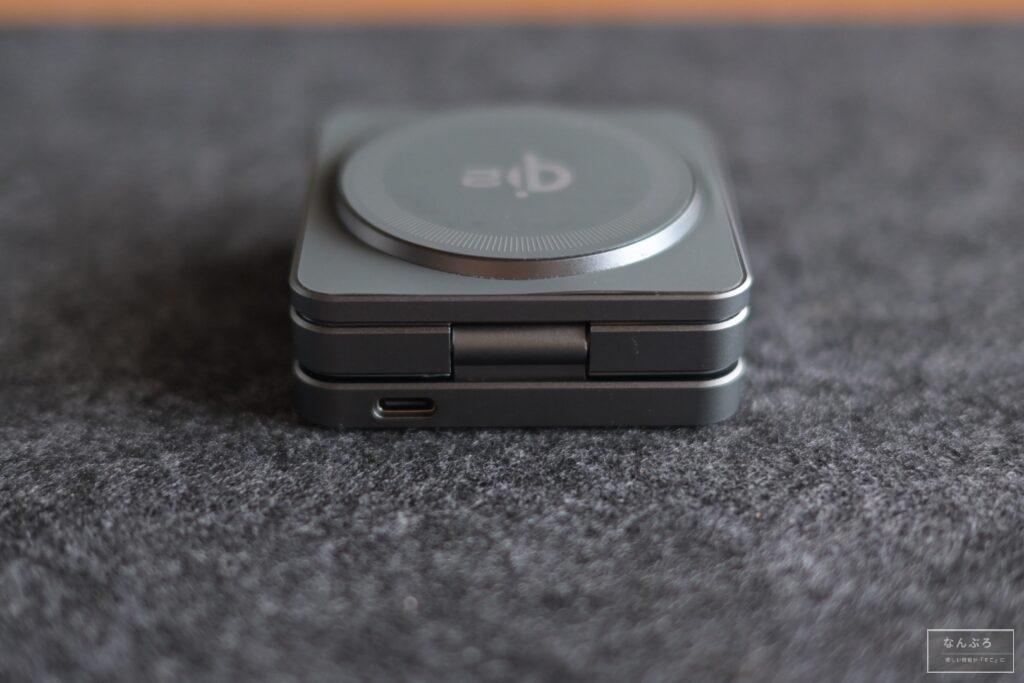 後ろ側の一番下の部分にType-Cの充電ポートがあり、充電器を展開するとそれぞれのデバイスの充電場所はこんな感じです。