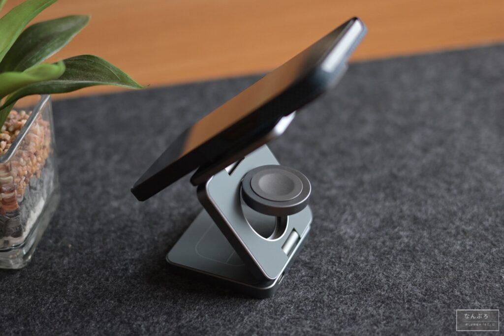 他にもQi2対応なのでワイヤレスでも充電が速いし、絶妙な角度で折り畳めるのでスマホの角度やApple Watchの角度も自由な角度で充電できます。