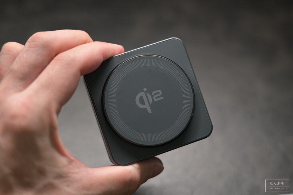 さらにはQi2対応なので、対応スマホ(iPhone13、14、15シリーズ)であればワイヤレスでも最大15Wでの充電が可能です。