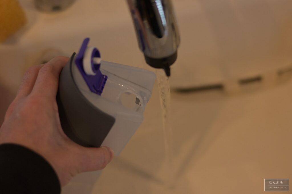 あとは、良くも悪くも水タンクに水がないと掃除できません。水がない状態でスイッチOnにしても「タンクに水がありません」という音声が鳴って電源が切れます。