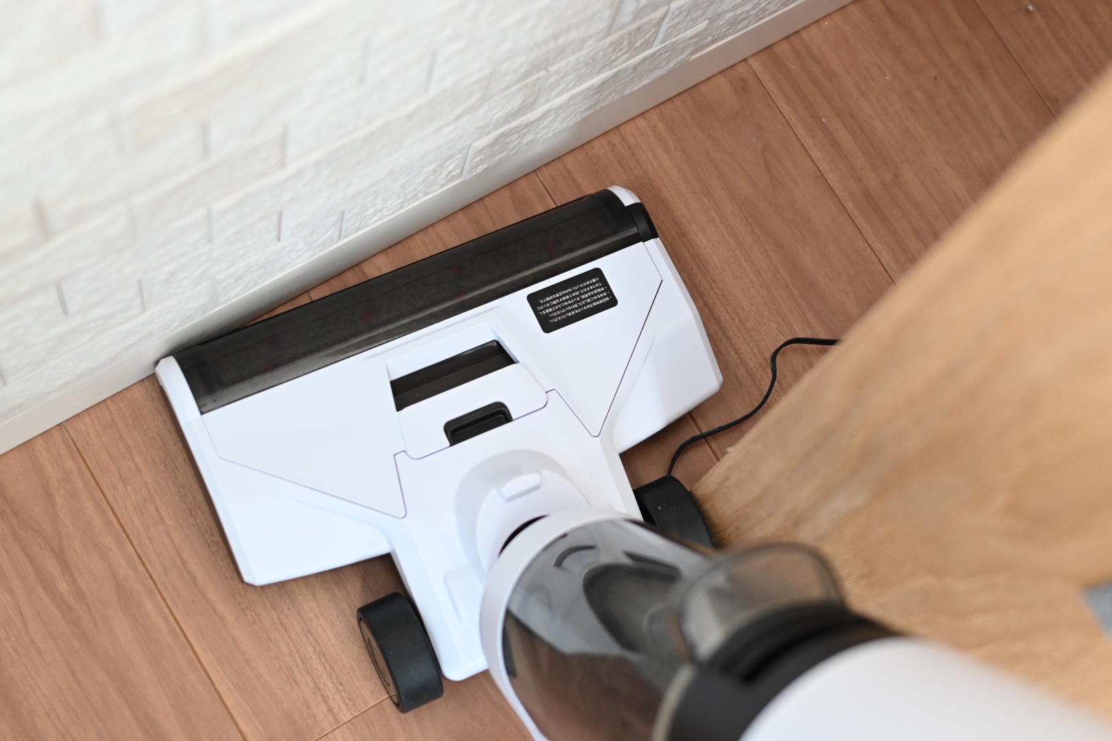 コードレス掃除機+強力モップ掛けできるので、掃除機だけでなくフローリングにこぼれた液体もささっと掃除できます。コスパが良いお掃除ロボットも増えてきていますが、細かい部分含めて自分で掃除したい人にピッタリのコードレス掃除機です。