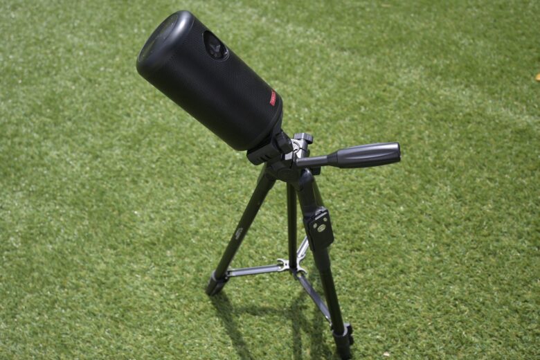 三脚とドッキングすることで、プロジェクターの投影角度が簡単に調整できて便利です。