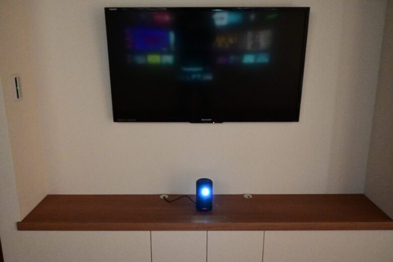 ただ、壁の前にプロジェクター本体を置いたとしても壁に音がぶつかり反響するため違和感なく音が聞こえるのでご安心ください。