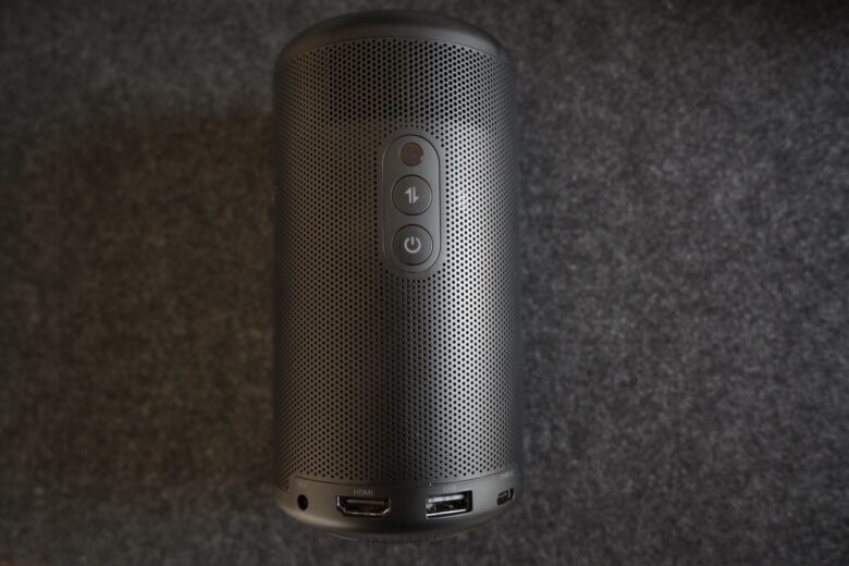 ちなみに、スピーカーが背面部分にあるので投影時は自分より前にプロジェクター本体があると、ダイレクトで音が聞こえます(こっちの方が迫力が出る)