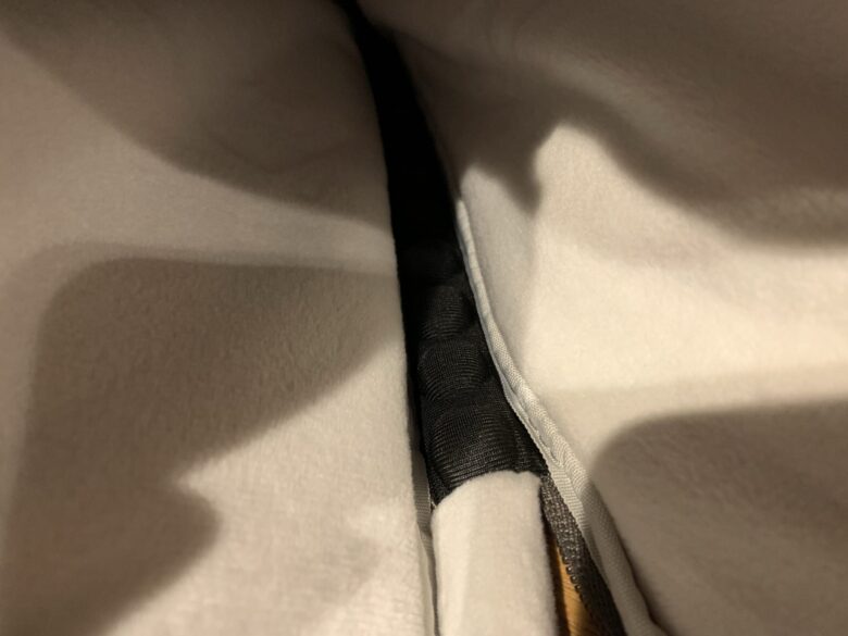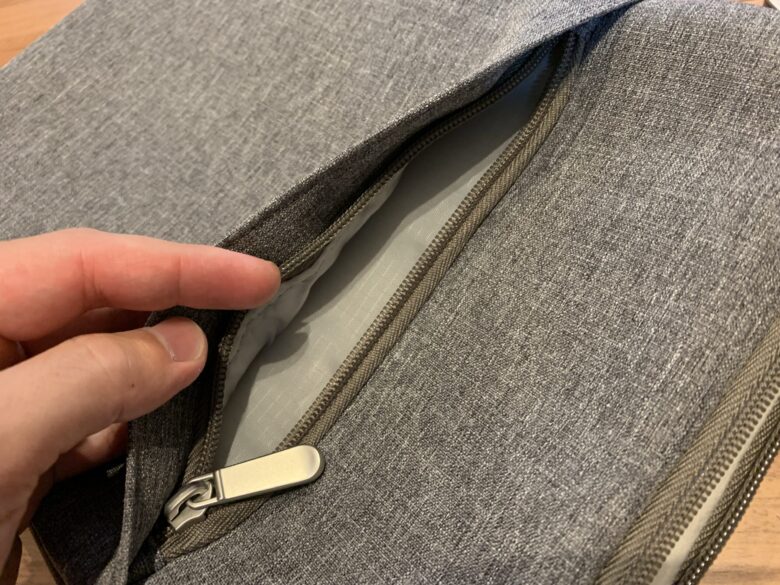 外側にはジッパーの収納場所がある