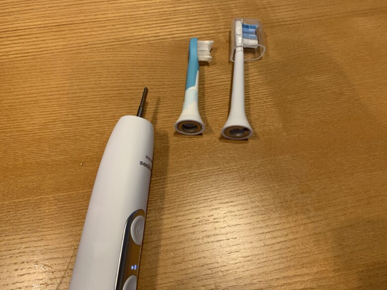 他にも替えブラシを変えることで大人(複数人で)の使い分けもできるし、子供との使い分けもできます。1つの本体(ソニックケア本体)で複数人が使えるのもコスパが良くてソニッケアの良い点だと考えます。