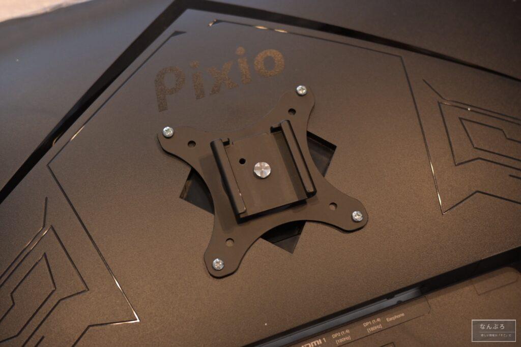 付属のスタンドを使って設置することもできますが、VESA(100×100)対応なので背面のネジ穴を使ってアームで吊るすこともできます。