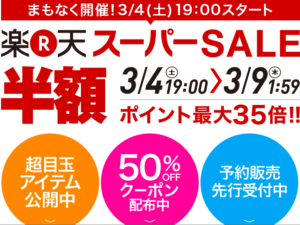 今回のスーパーセールは半額以下になる商品も多数あります。