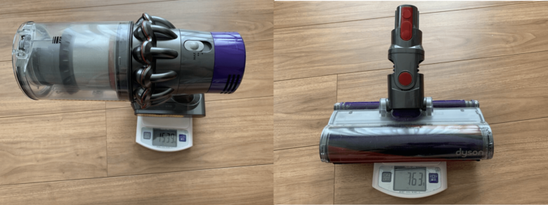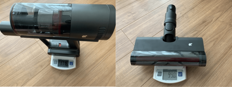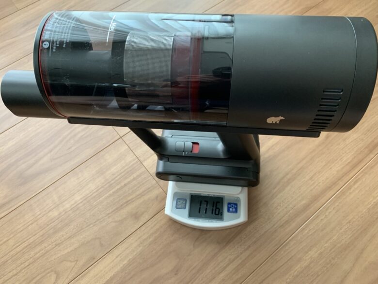 持った感じは少し重いかなと感じましたが、長時間掃除機かける人はいないですし、個人的には許容範囲です。