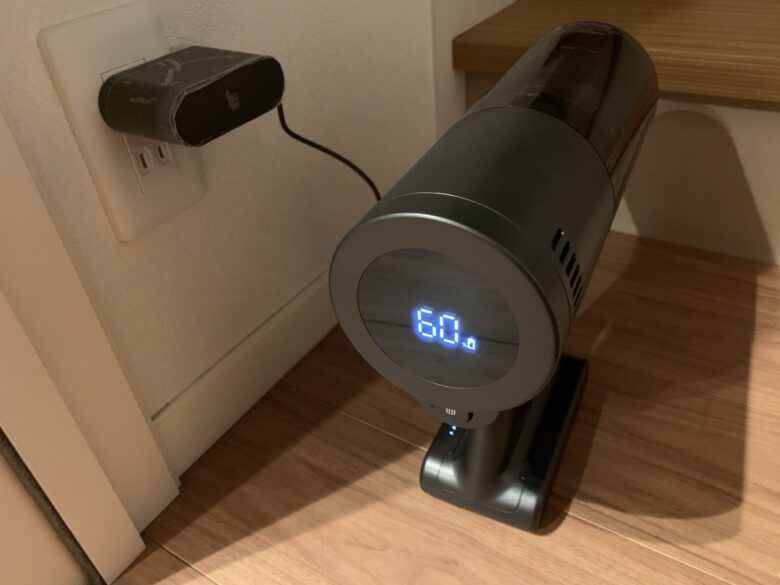 Shunzao Z11 Proの最大稼働時間は60分ですが、まぁコードレス掃除機使ってノコノコ掃除する人もいないですよね。