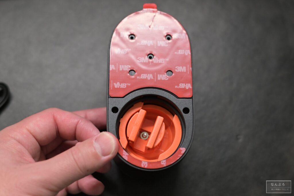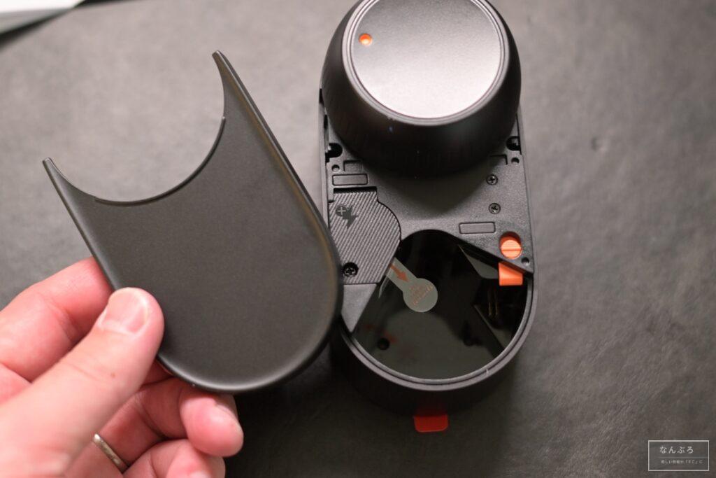 正面はバッテリーが入るようなスペースがあり、中には予備バッテリー(電池)も入ってます。通常のメインバッテリーは充電できますが、緊急時やメインバッテリーの電池が切れた時用の予備バッテリーは電池です。