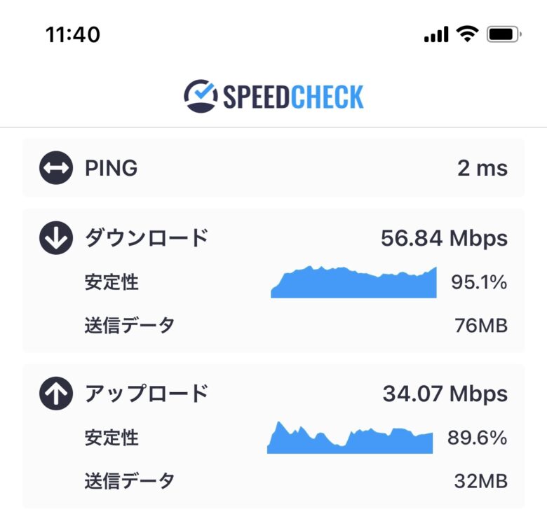 2階フロアでのネットワーク速度は少し落ちましたね。