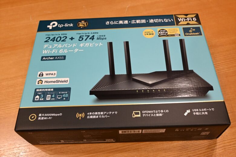 早速ですが、今回レビューする「TP-LinkのArcher AX55」はこちらです。