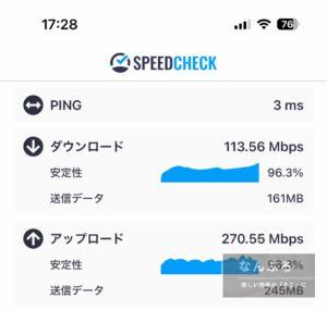 普段は100Mbbs行かないことも多いのですがいきなり超えてきましたね。ずっと超えたことなかったですが、これは嬉しい。笑