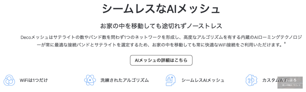 特徴:シームレスなAIメッシュで家の中を移動してもWi-Fiが途切れない