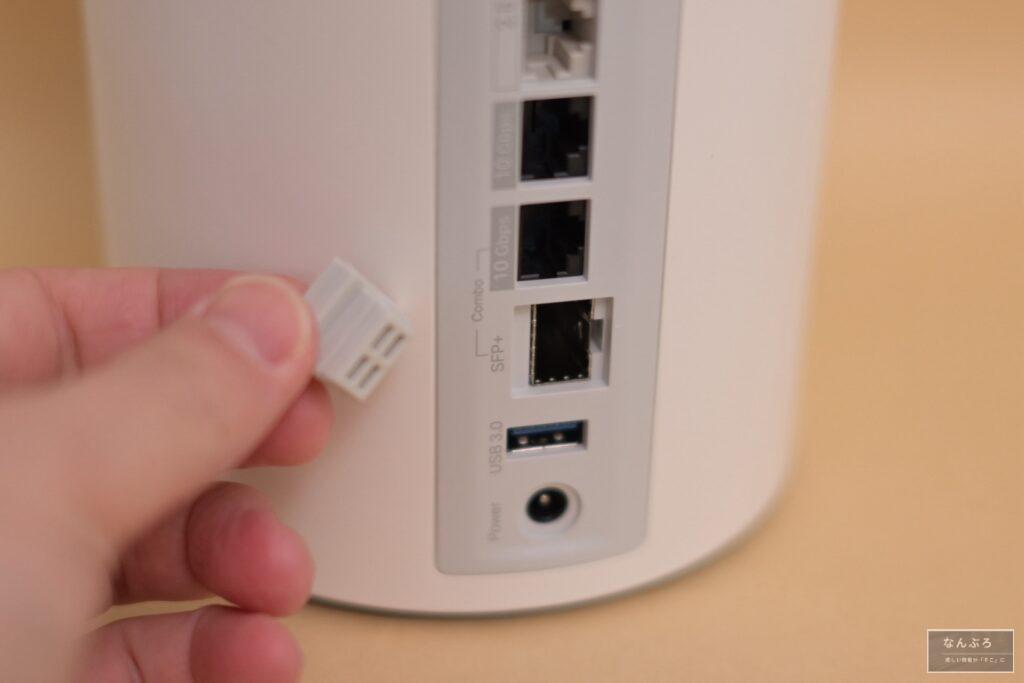 2つの10Gbps対応WAN/LANポート(ファイバー+イーサネット)搭載で、SFPモジュールを利用して光ファイバーイーサネットに変換することも可能。