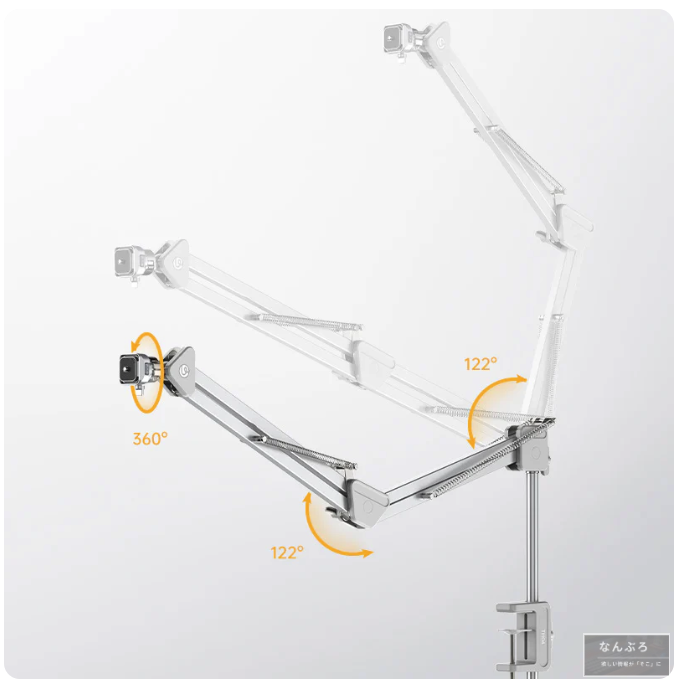 簡単にデスクに設置できてアームの可動域も広いので便利すぎる。