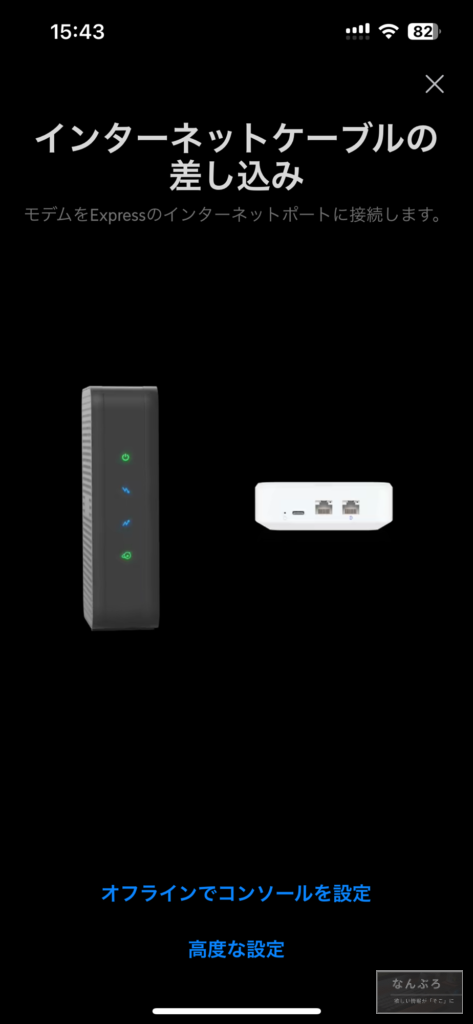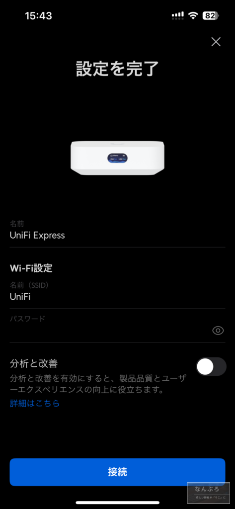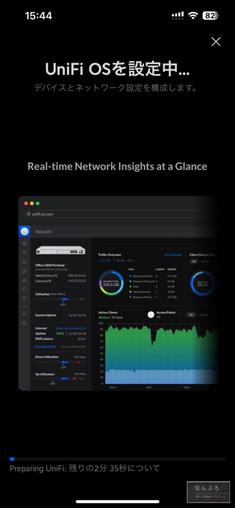 まず、UniFi Express本体の電源を入れて「UniFi」アプリを立ち上げます。