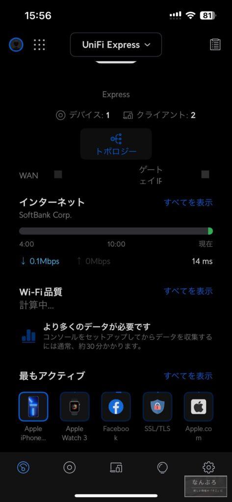 この専用アプリUnifiではいろんな設定変更や状況の確認ができます。